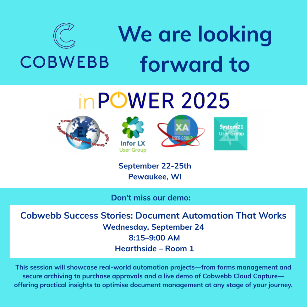 We’ll take you through real-world projects delivered across key business functions: starting with Forms Management and secure Document Archiving, moving into automated Purchase Requisition approvals and a live demo of our powerful AP Automation solution, Cobwebb Cloud Capture – Finance (CCC-F)